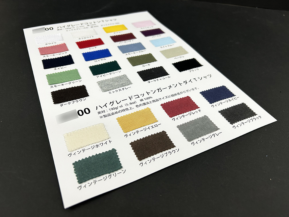 Tシャツ生地の見本帳 製作